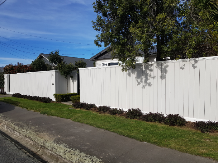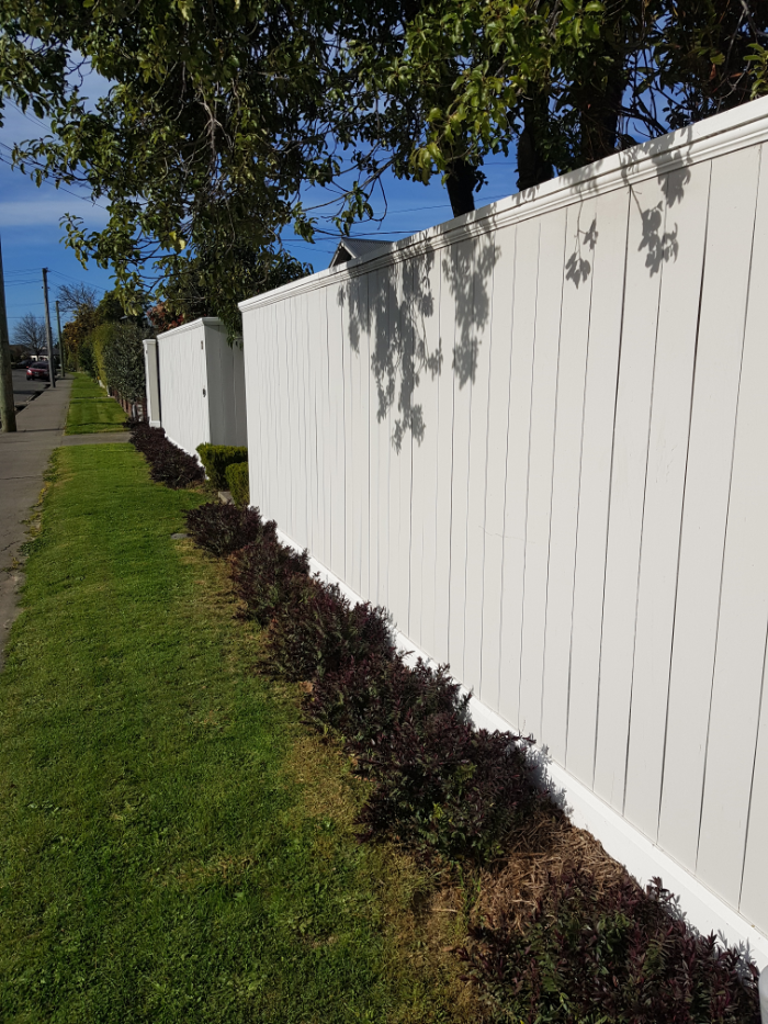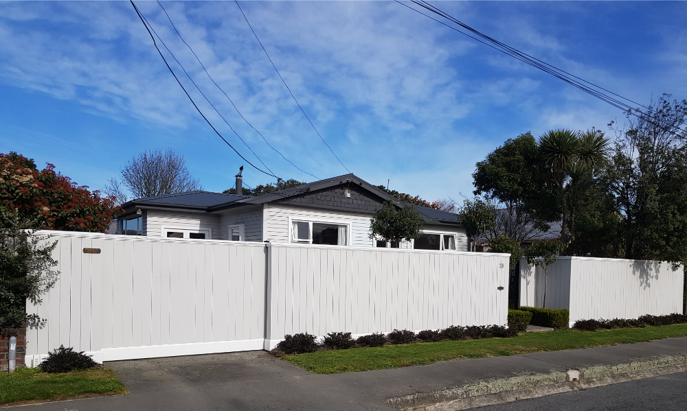 Cottage Fence with a sliding driveway gate. This timber fence provides privacy and security and fits perfectly with our cottage style house. The sliding gate is an added extra that makes arriving and departing easy.